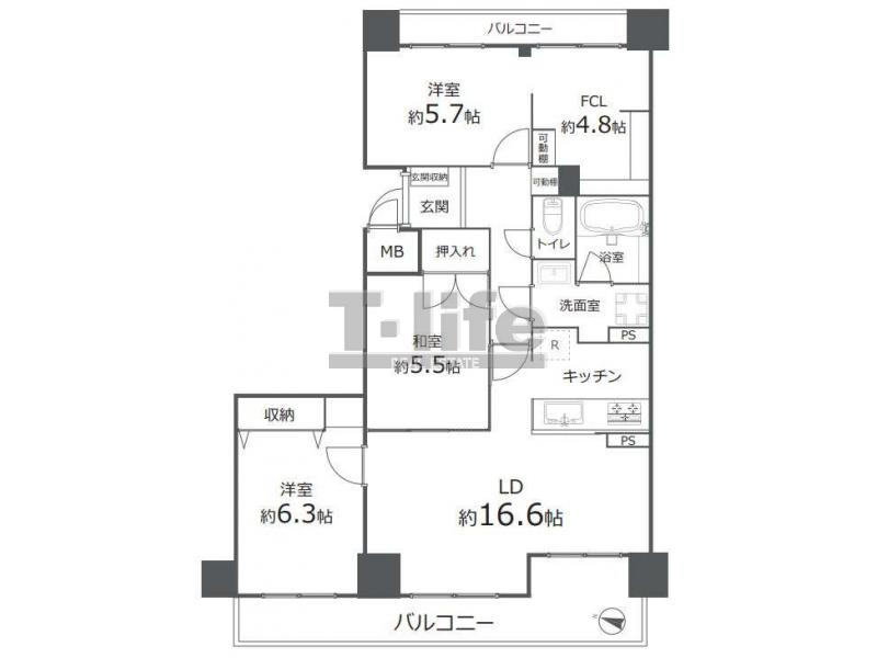 | 間取詳細 | LDK16.6、6.3洋、5.7洋、5.5和 | ||