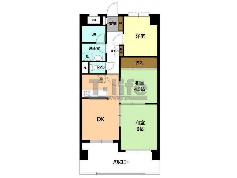 | 間取詳細 | DK、6和、4.5和、洋 | ||