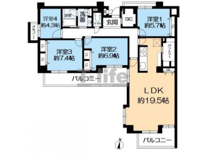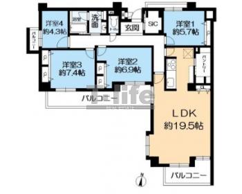 | 間取詳細 | LDK19.5、7.4洋、6.9洋、5.7洋、4.3洋 | ||