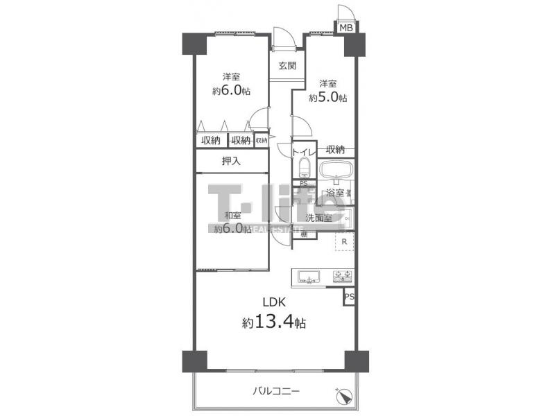 | 間取詳細 | LDK13.4、6洋、5洋、6和 | ||