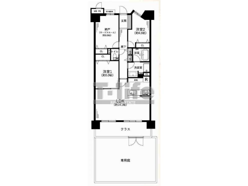 | 間取詳細 | LDK14.1、5洋、4.5洋、納戸6.0 | ||