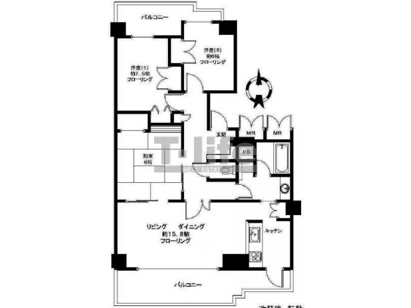 | 間取詳細 | LD15.8+K、7.5洋、6洋、6和 | ||