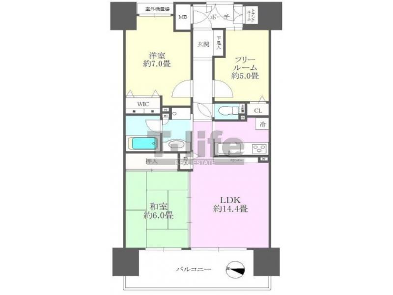 | 間取詳細 | LDK14.4、7洋、6和、納戸5.0 | ||