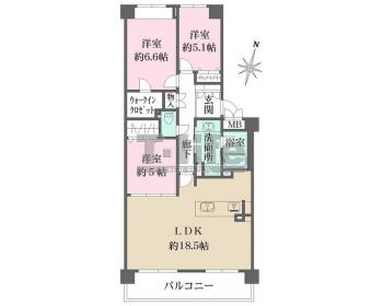 | 間取詳細 | LDK18.5、6.6洋、5.1洋、5洋 | ||