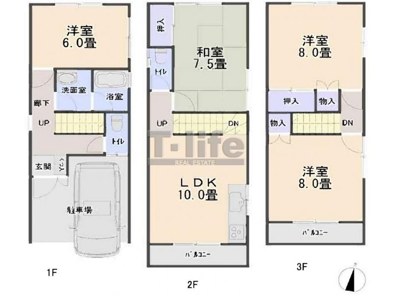 | 間取詳細 | 1F:6洋 2F:LDK10、7.5和 3F:8洋、8洋 | ||