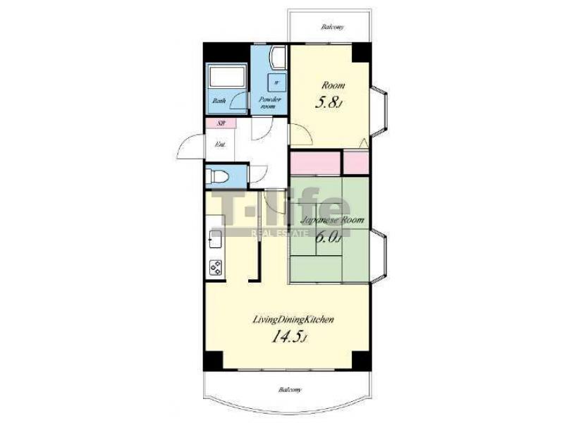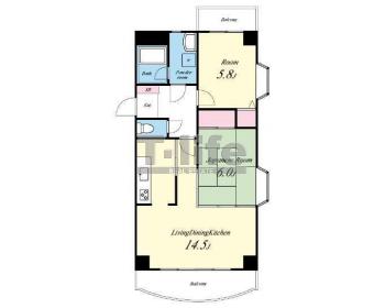 | 間取詳細 | LDK14.5、6和、5.8洋 | ||