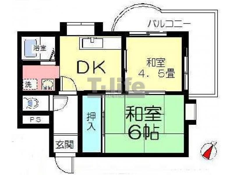 | 間取詳細 | DK、6和、4.5洋 | ||
