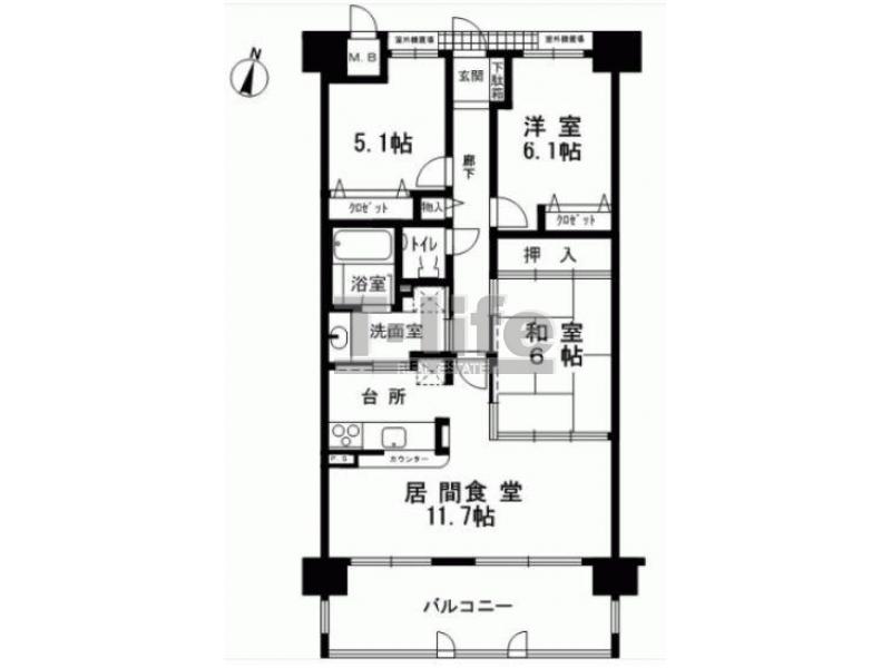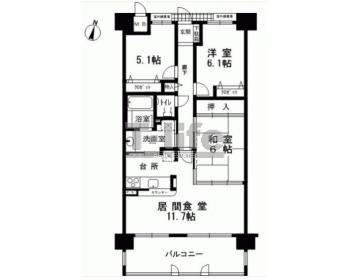 | 間取詳細 | LD11.7+K3.3、6.1洋、6和、納戸5.1 | ||