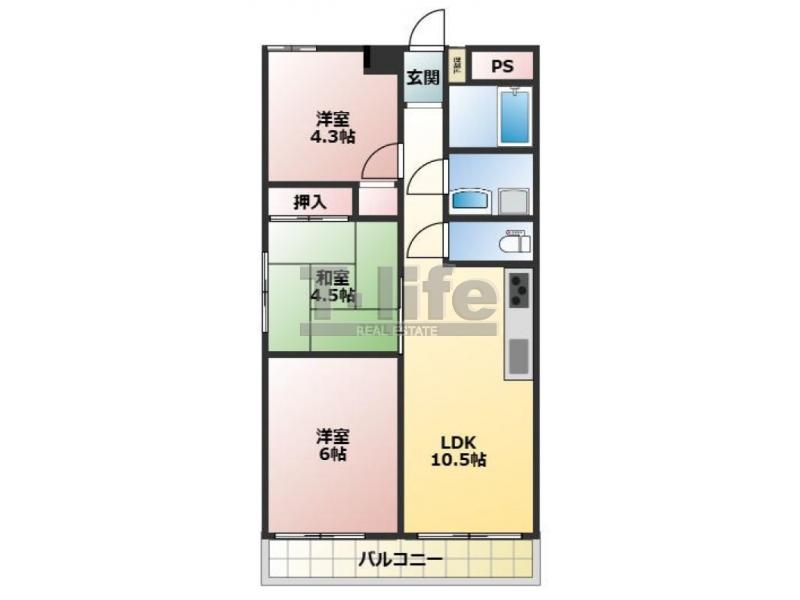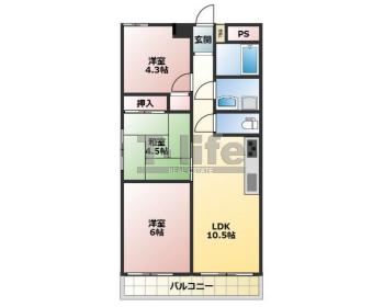 | 間取詳細 | LDK10.5、6洋、4.3洋、4.5和 | ||