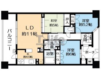 | 間取詳細 | LD11.0+K4.5、6洋、5.2洋、5和 | ||