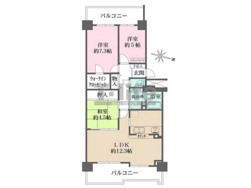 | 間取詳細 | LDK12.3、7.3洋、5洋、4.5和 | ||