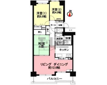 | 間取詳細 | LD12.6+K、6.6洋、4.9洋、6和 | ||